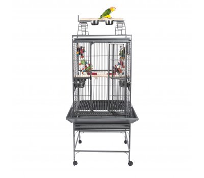 The Bolivia 1 play top bird cage is simple yet very stylish it comes complete with 3 feeder bowls, perches and seed catcher. It also has a play top this allows your pet somewhere to sit whilst out of its cage, it has a sturdy perch and 2 ladders, perfect for playtime, with additional feeder bowls and a removable tray on top of the cage.
