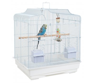 The Rainforest Cages Costa Rica cage is suitable for Budgies, Finches, Canaries and other similar sized birds. . The Costa Rica cage features a plastic base with coated wire construction, a pull out cleaning tray with safety grill, a carry handle located at the top of the cage and a large swing opening door. The Costa Rica cage includes one swing, two perches and two plastic feeding bowls.