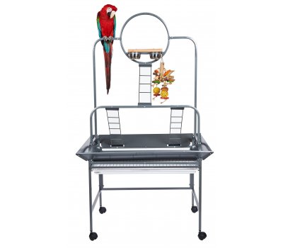 The Rainforest Cages Guyana Bird Play Stand is suitable for Small Parrots, e.g. Senegals, Medium Parrots, e.g. African Greys and other similar sized birds. The Guyana features castors, pull out cleaning tray, safety grill, seed catcher and hook for the appendage of additional toys. The Guyana includes three wooden and metal ladders and two wooden perches.