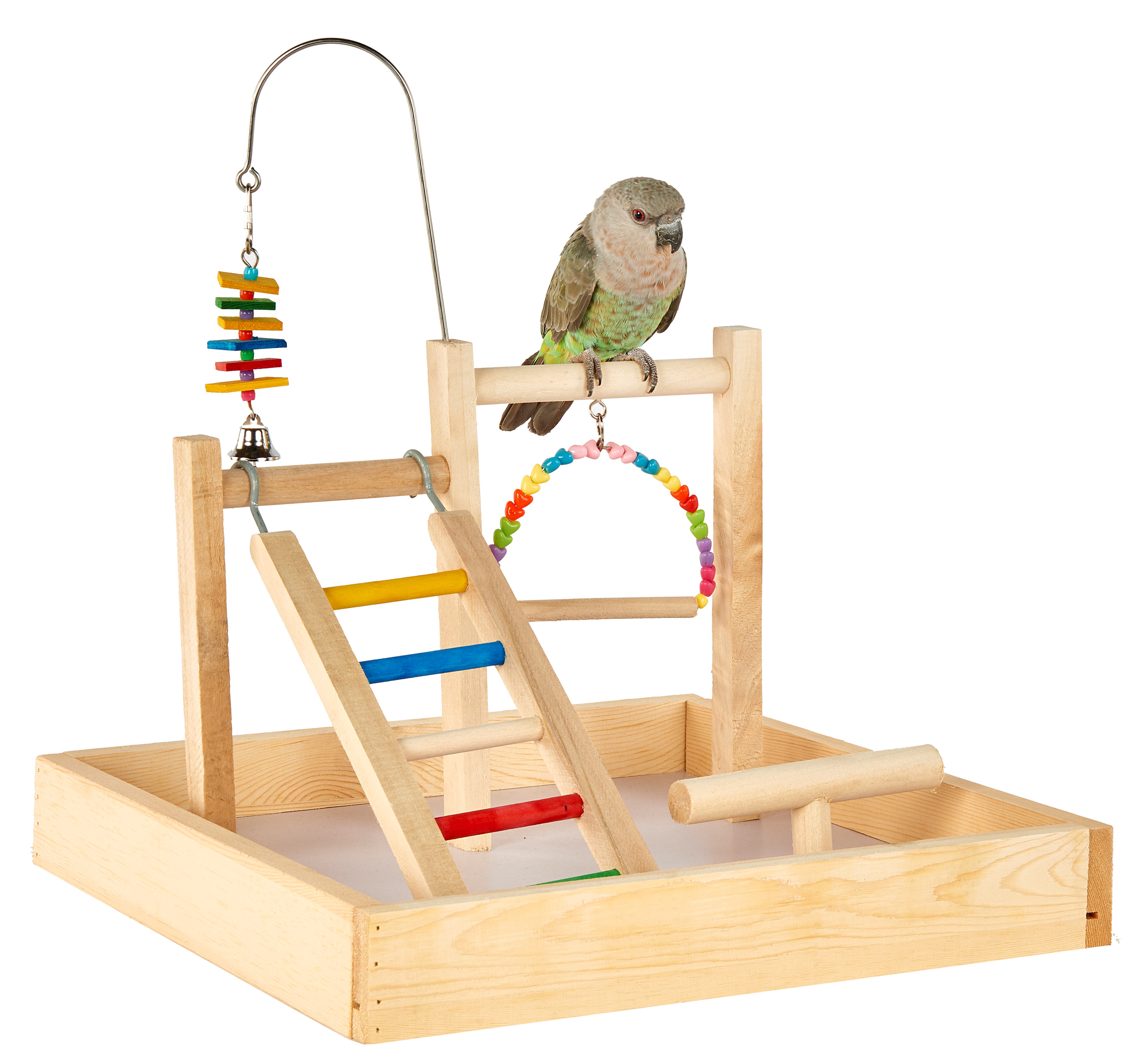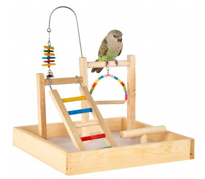 The Liberta Table Stand play stand is suitable for Budgies, Cockatiels, Small Parrots, e.g. Senegals and other similar sized birds. The Table Stand play stand features a wooden construction design with three perches at differing heights. The Table Stand play stand includes a colourful wooden ladder.