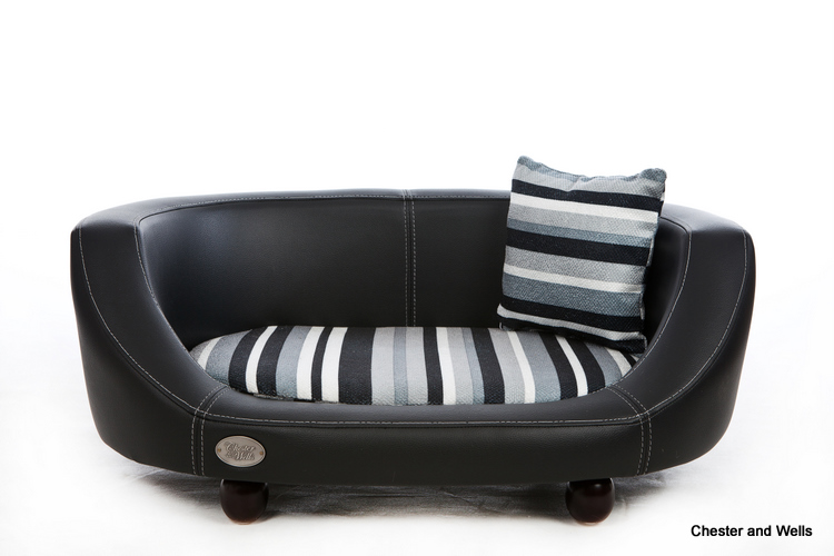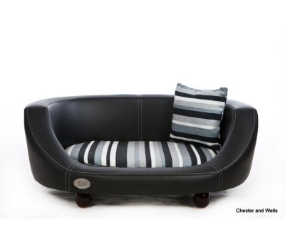 The Oxford ll from Chester & Wells is a faux leather material dog bed with stylish lines and a gorgeous soft cushion and pillow. With wooden feet and 3 sizes to suit most breeds of dog.