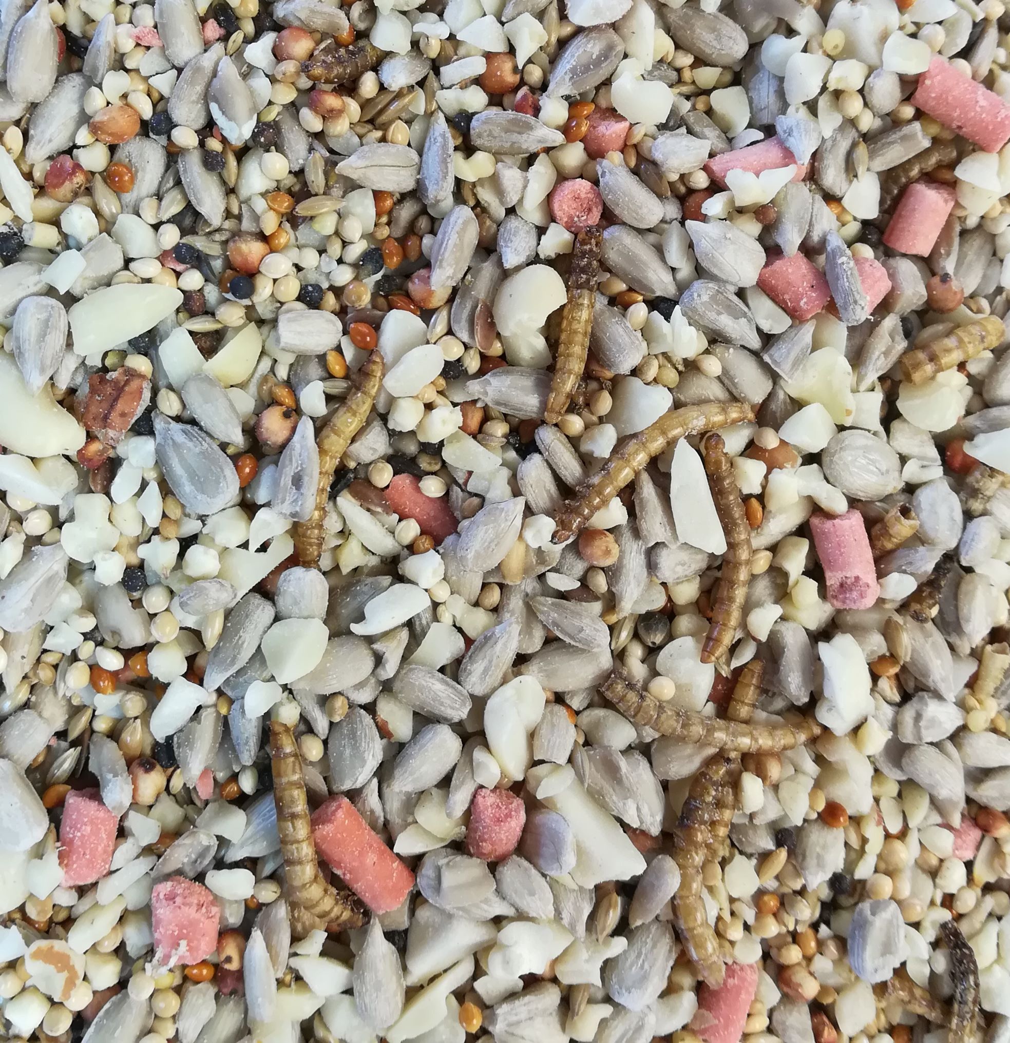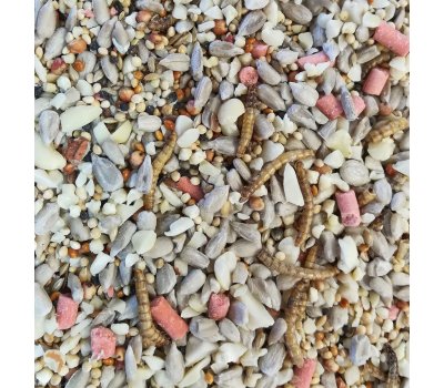 Our own blend of sunflower hearts, peanut granules, fine seeds, suet pellets and mealworms make this food universally popular with no waste.