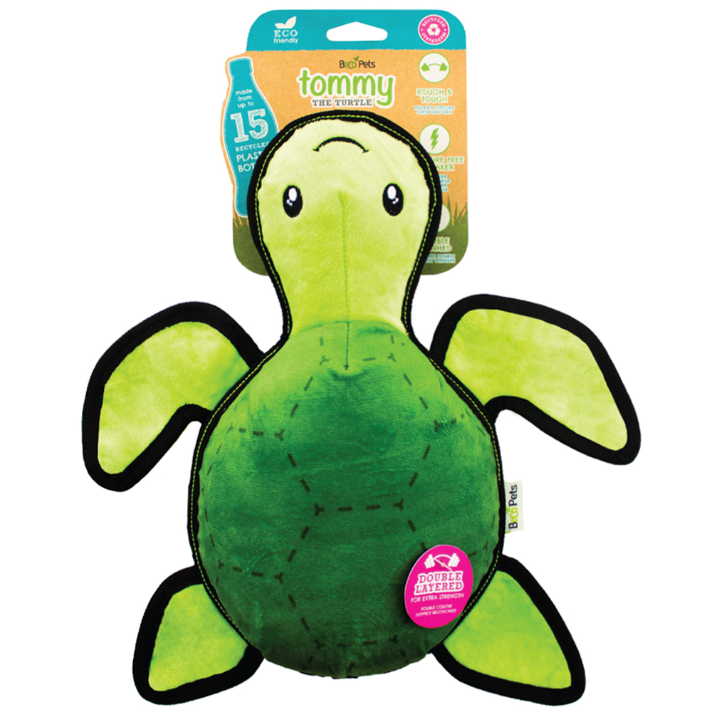 Recycled plastic bottles are used to make the hardy cloth and soft stuffing in these Eco-conscious Dog Toys