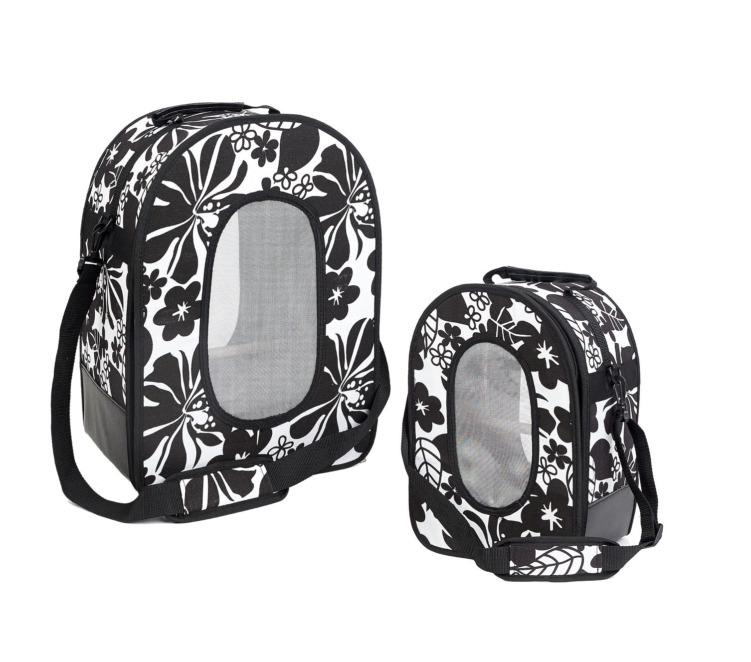 These Travel Bags feature a cotton and nylon fabric construction, net windows, a carry handle and a zip around door. The Travel Bag includes a shoulder strap and a wooden perch.