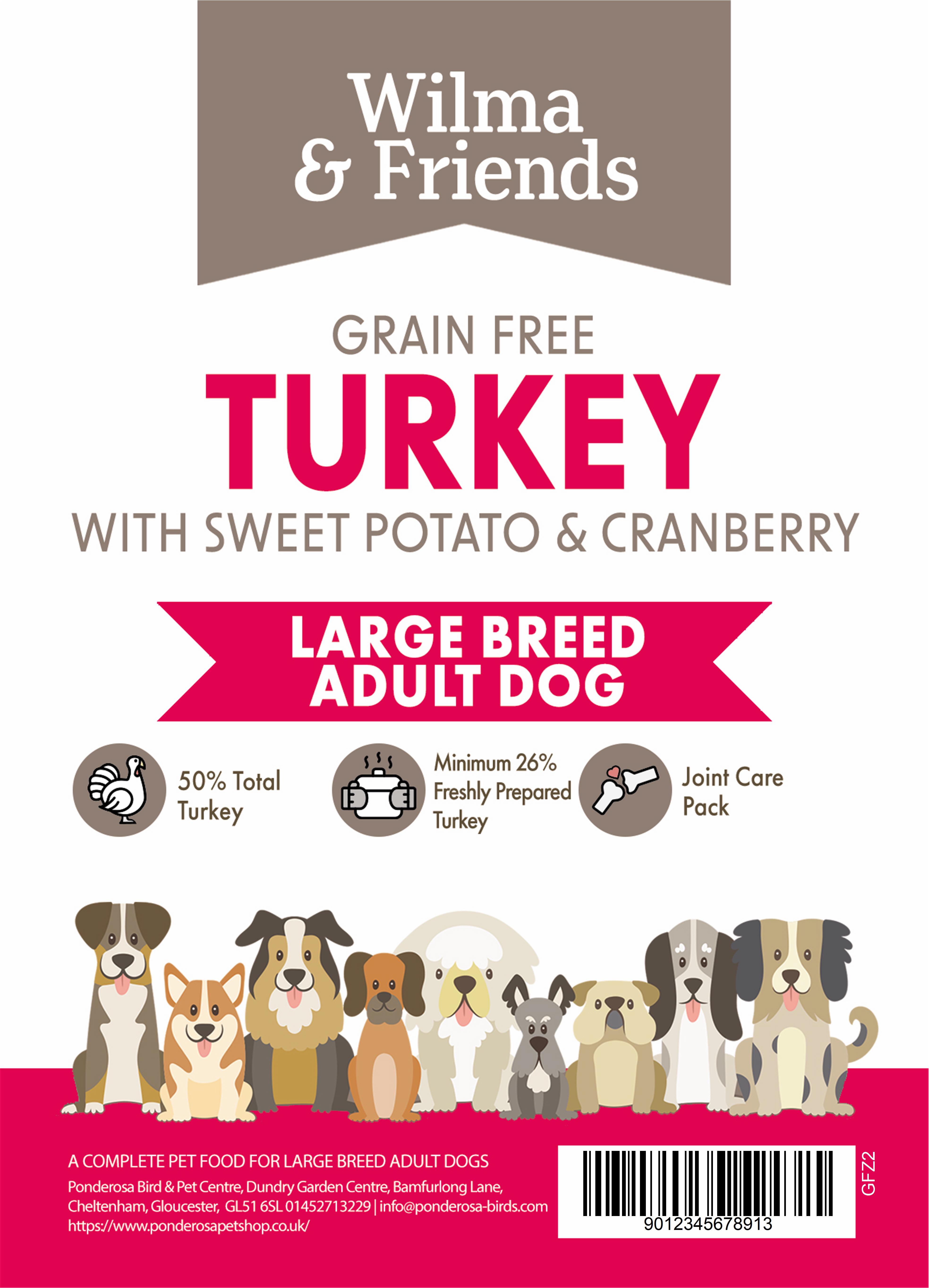 Wilma and Friends Grain Free Adult Dog Turkey with Sweet Potato and Cranberry Large Breed